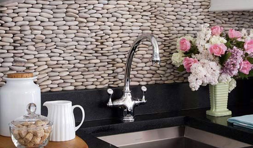 Pebble: For a very unique backsplash, layer pebbles or stones behind your backsplash.